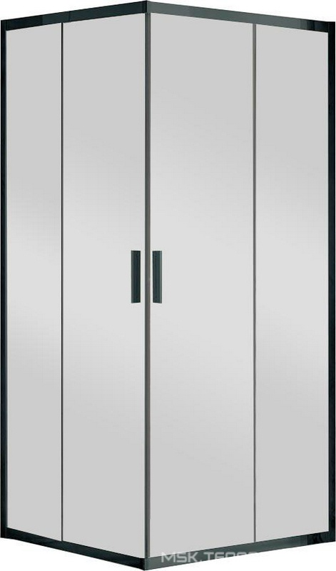 Душевой уголок 900х900хh1900мм, квадрат, 2 сдвиж. дверцы с 2 неподв. сегментами, (стекло прозрачное 6мм, фурн.цв.черный матовый), Eco