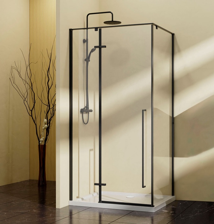 Душевое ограждение ZP+ZPV, 120х90х2000 мм, дверь со стороны 120,профиль черный матовый, стекло прозрачное, БЕЗ поддона ZZ