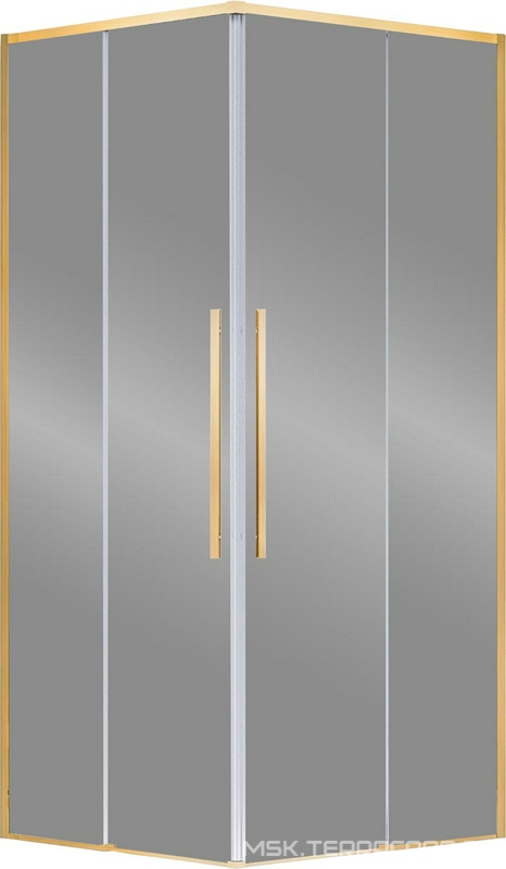Душ.уголок 1000х1000хh1950мм, квадрат, распашная дверь с неподв.сегм. и бок.стенкой, ПРАВАЯ, (стекло прозр.с мат.узором 6мм, проф.цв.золото),GiubleoZZ
