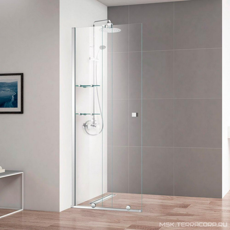 Душевая перегородка Cezares Stream Душевая перегородка 900хh1950мм, 2 стекла, раздвижн., правая/левая, полочки 2шт. с крепл. в компл., (стекло прозр.8мм., фурнит. цв.хром), Stream ZZ