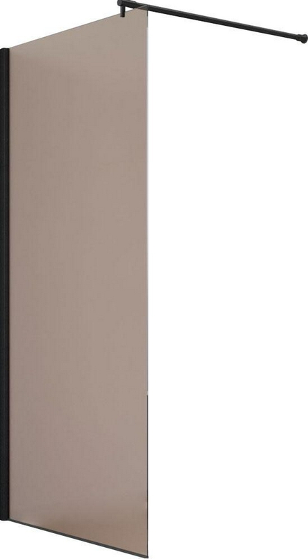Душевая перегородка 900хh1950мм, правая/левая, (стекло бронза 8мм, поперечный, подрезаемый кронштейн 1200мм, фурнит. цв.черный мат.), Liberta ZZ