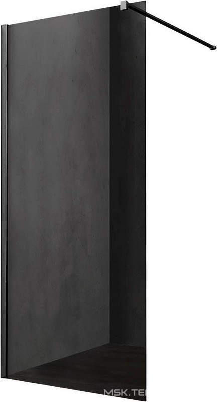 Душевая перегородка 900хh2000мм, правая/левая, (стекло тонированное 8мм, поперечн. укорачиваемый кронштейн 1200мм, фурнит.цв.черный мат.), Walk-In ZZ