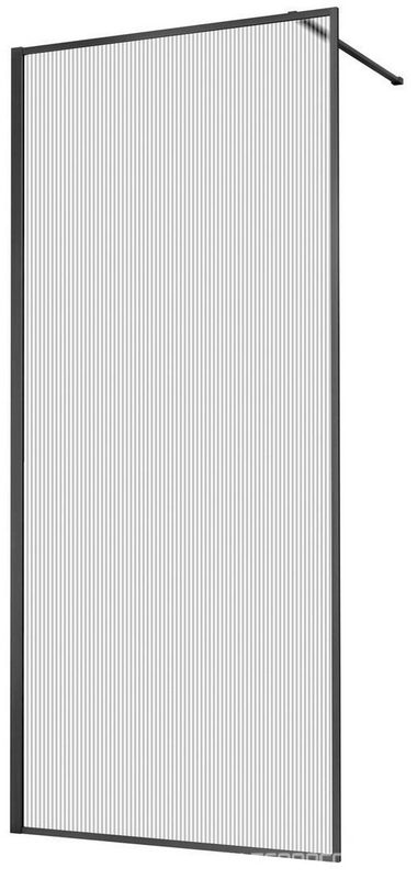 Душевая перегородка 800хh2000мм, правая/левая, (стекло рифленое 8мм Easy Clean, укорачиваемый кронштейн 1200мм, фурнит.цв.черный матовый), Walk-In ZZ