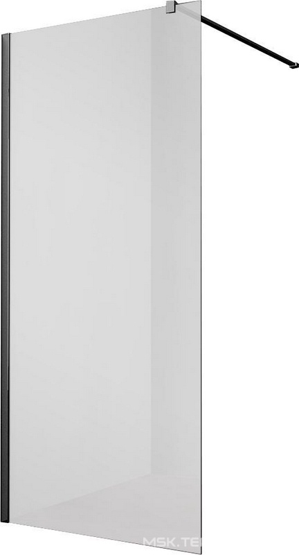 Душевая перегородка 900хh2000мм, правая/левая, (стекло прозрачное 8мм, поперечн. укорачиваемый кронштейн 1200мм, фурнит.цв.черный мат.), Walk-In ZZ