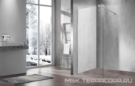 Душевая перегородка 900хh2000мм, правая/левая, (стекло прозрачное 8мм, поперечн. укорачиваемый кронштейн 1200мм, фурнит.цв.черный мат.), Walk-In ZZ