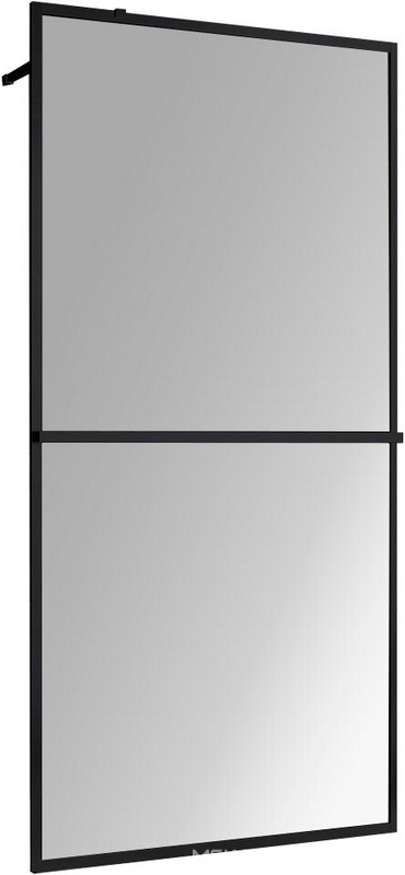 Душевая перегородка 900хh2000мм, правая/левая, (стекло зеркальное 8мм, поперечн. укорачиваемый кронштейн 1200мм, фурнит.цв.черный мат.), Walk-In ZZ