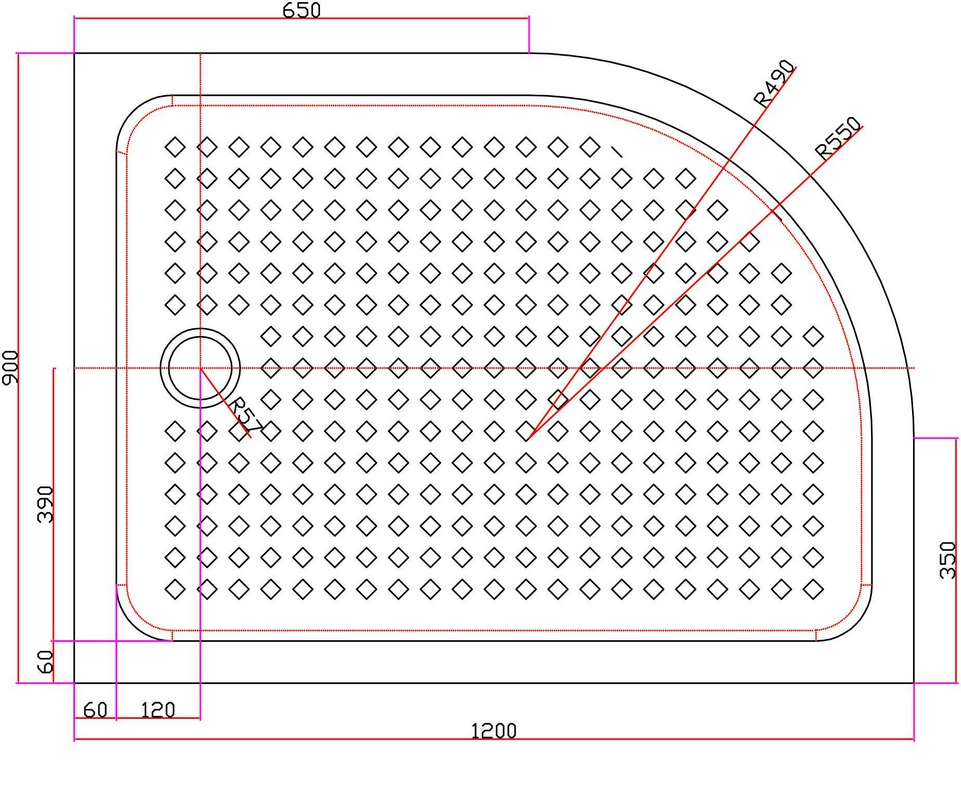 Душевой поддон Cezares Универсал Поддон душевой 1200х900h150мм, ассиметричный, R550мм, "Левый", отв. слива 90мм, (сифон крыш. цв.хром, мет каркас, ножки/комп.), акрил/бел, Cezares ZZ