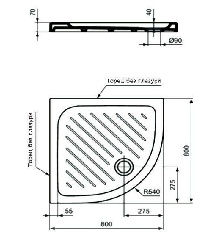Душевой поддон Vidima Видима Поддон 80х80 см полукруглый, керамический, БЕЗ сифона ZZ