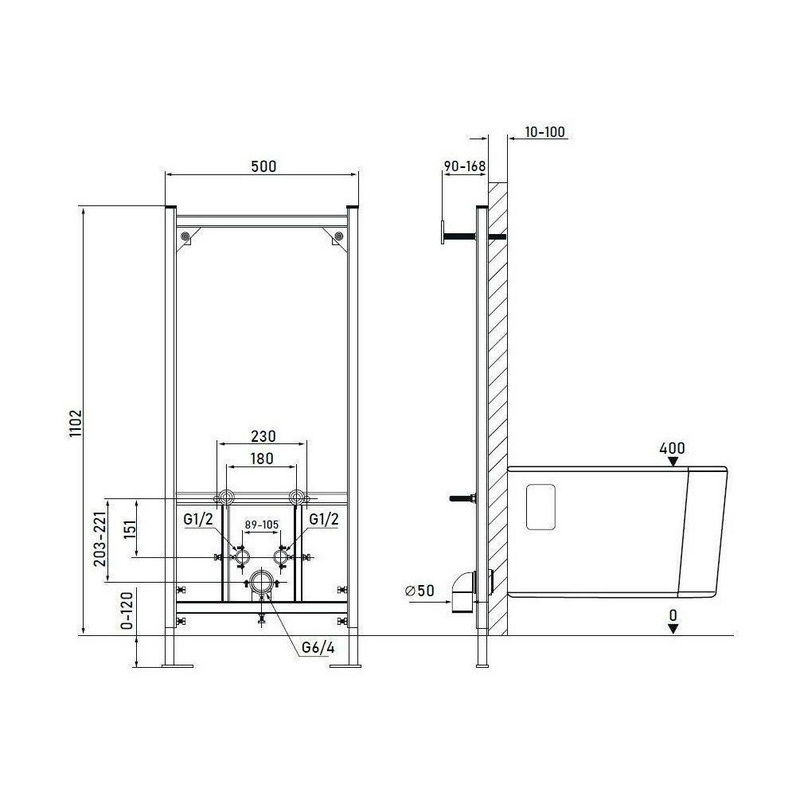Инсталляция и кнопка для биде Allen Brau Base Инсталляция для подвесн. биде, 1102-1222х500мм, патрубок 50/51,4мм, крепеж к стене в компл., Base
