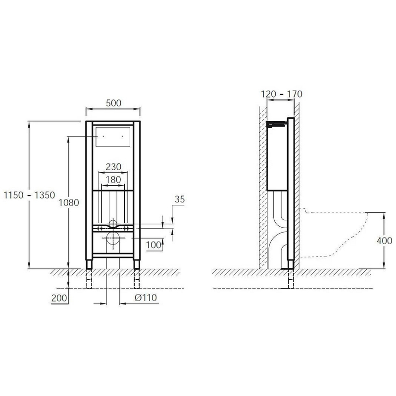 Инсталляция и кнопка для унитазов Jacob Delafon Универсал Инсталляция для подвесного унитаза на 3/6 литра, БЕЗ кнопки, крепеж в комплекте ZZ