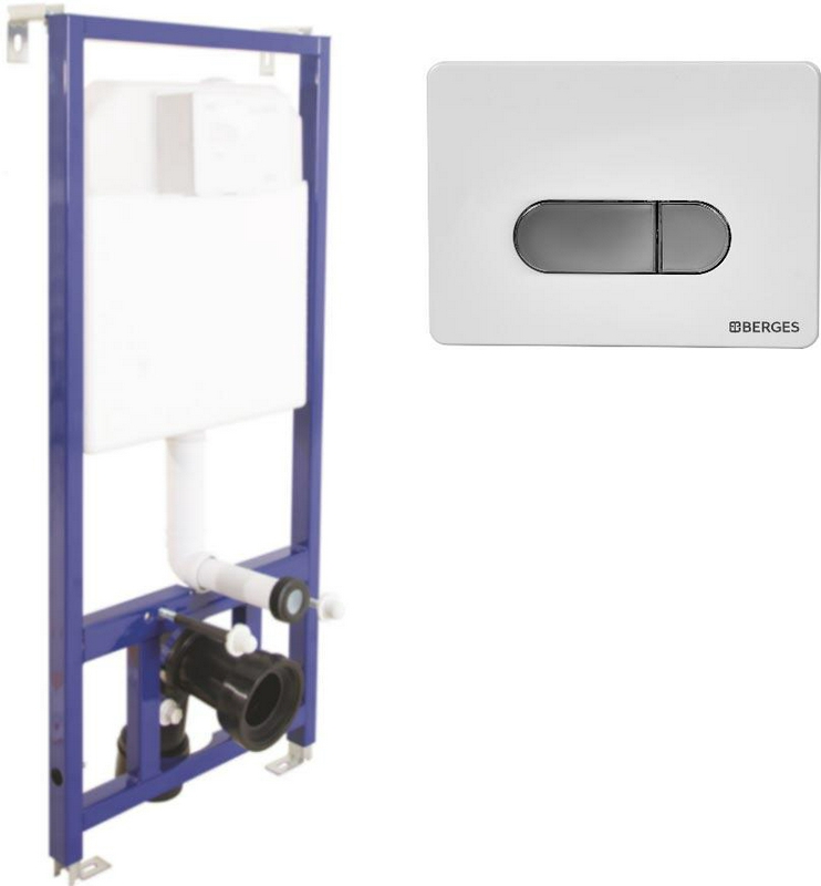 Инсталляция и кнопка для унитазов Berges Novum Система инсталляции для унитазов Berges Wasserhaus Novum D7 с кнопкой смыва хром| 52x139x17