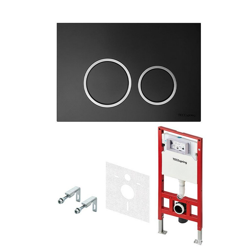 Инсталляция и кнопка для унитазов Tece TECEspring К-т д/установки подвесн.унитаза,(застен.модуль, крепёж, прокладка звукоиз, панель 2-го смыва пластик цв.ЧЕРНЫЙ мат., контур клавиш хром), TECEspring R