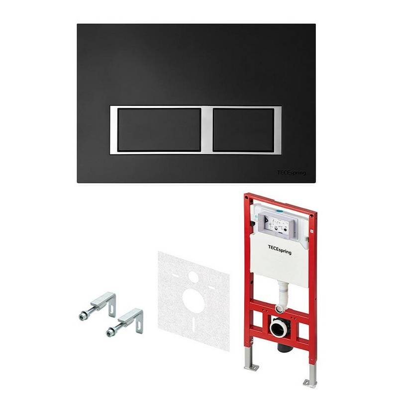 К-т д/установки подвесн.унитаза,(застен.модуль, крепёж, прокладка звукоиз,панель 2-го смыва пластик цв.ЧЕРНЫЙ мат.,контур клавиш хром), V XX Tece TECEspring K955202