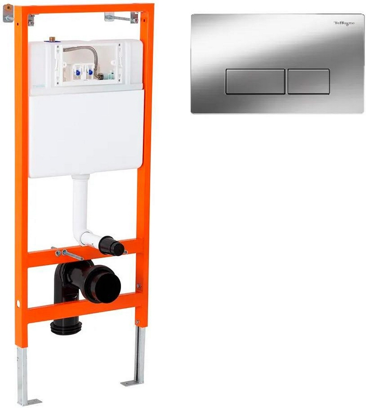 Инсталляция и кнопка для унитазов BelBagno Универсал Инсталляция для подвесн. унитаза,1155х515х140мм, со смывным бачком, крепёж к стене, клавиша смыва с прямоуг. кнопками цв.хром в компл, BelBagno ZZ