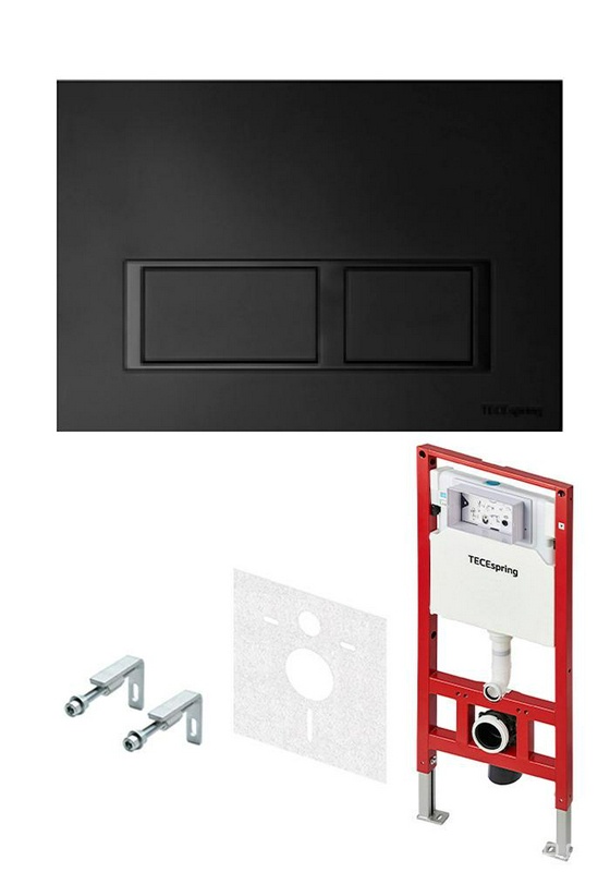 К-т д/установки подвесн.унитаза,(застен.модуль, крепёж, прокладка звукоиз, панель 2-го смыва пласт.цв.ЧЕРНЫЙ мат.,контур клавиш черн.), V Tece TECEspring S955204