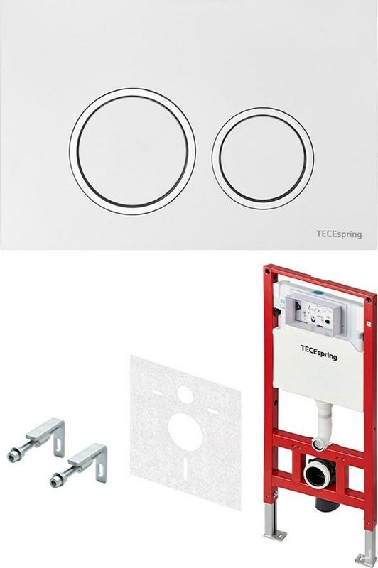 Инсталляция и кнопка для унитазов Tece TECEspring К-т д/установки подвесн.унитаза,(застен.модуль, крепёж, прокладка звукоиз, панель 2-го смыва пластик цв.БЕЛЫЙ глян.,контур клавиш хром)TECEspringR XX