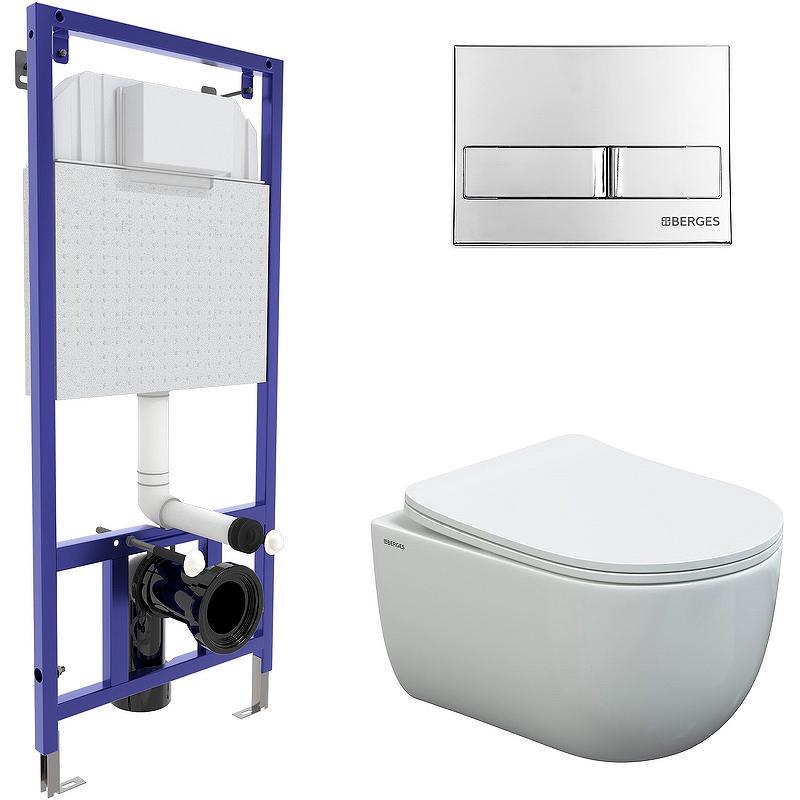 Инсталляция и кнопка для унитазов Berges Vita Комплект : инсталляция NOVUM для подвесного унитаза+ клавиша L1 белая глянец+ подвесной унитаз VITA Rimless 49 см с сиденьем микролифт ZZ