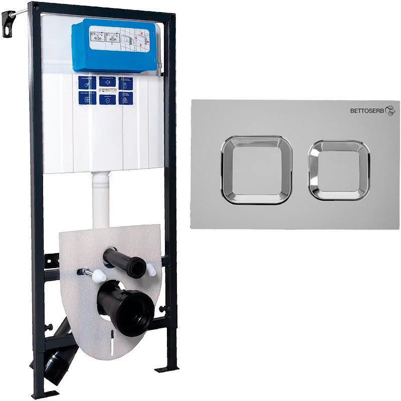Инсталляция и кнопка для унитазов Bettoserb Sava Fix Slim Комплект для установки подвесного унитаза, (застенный модуль, крепёж, панель 2-го смыва пластик цв.хром глянец), Sava Fix Slim ZZ
