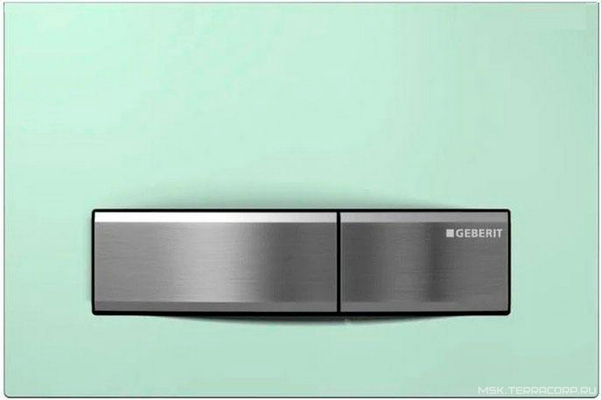 Кнопка Geberit Sigma 50 Клавиша двойного смыва, (корпус и клавиши цинковое литьё, вставка стекло цв.зелёный матовый), "Sigma 50" ХХ