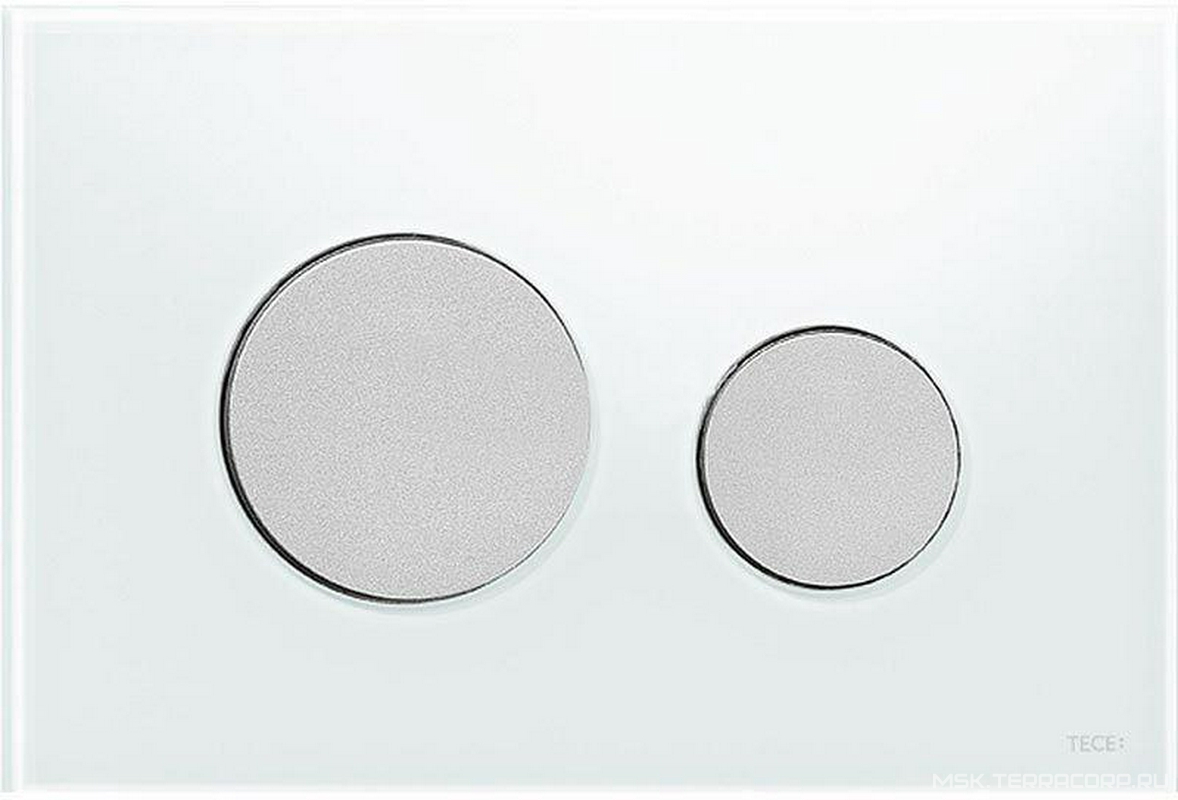 Панель смыва с двумя клавишами, для застенного модуля д/унит., д/горизонт/вертик. установки, (стекло белое, клавиши цв. хром матовый), TECEloop ZZ Tece Универсал 9240659