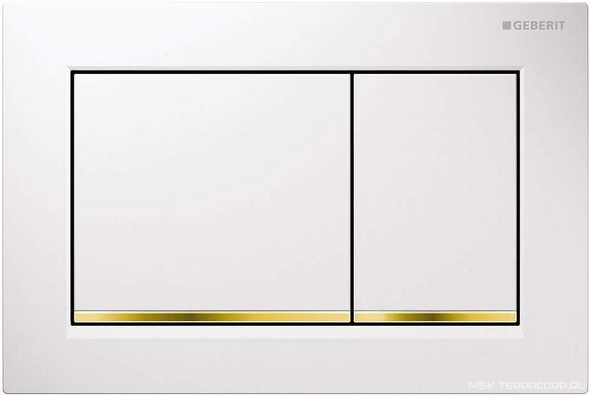 Клавиша смыва "" для инсталляции арт.111.060.00.1, рамка белая, декоративная планка позолоченная, кнопки белые ZZ Geberit Omega 30 115.080.KK.1