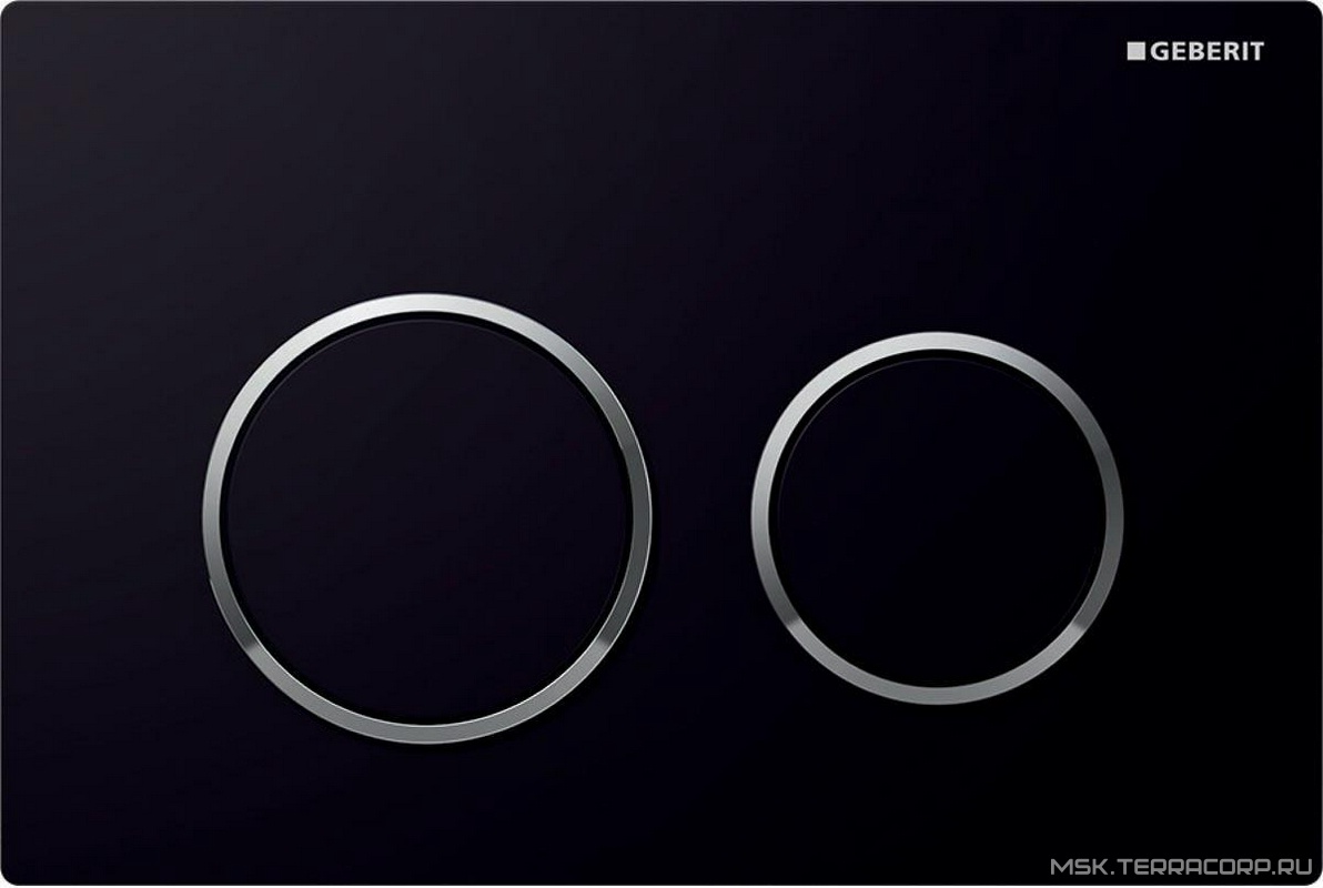 Клавиша смыва, (пластик цв.чёрный / обод на кнопках хром), 20 ZZ Geberit Omega 115.085.KM.1