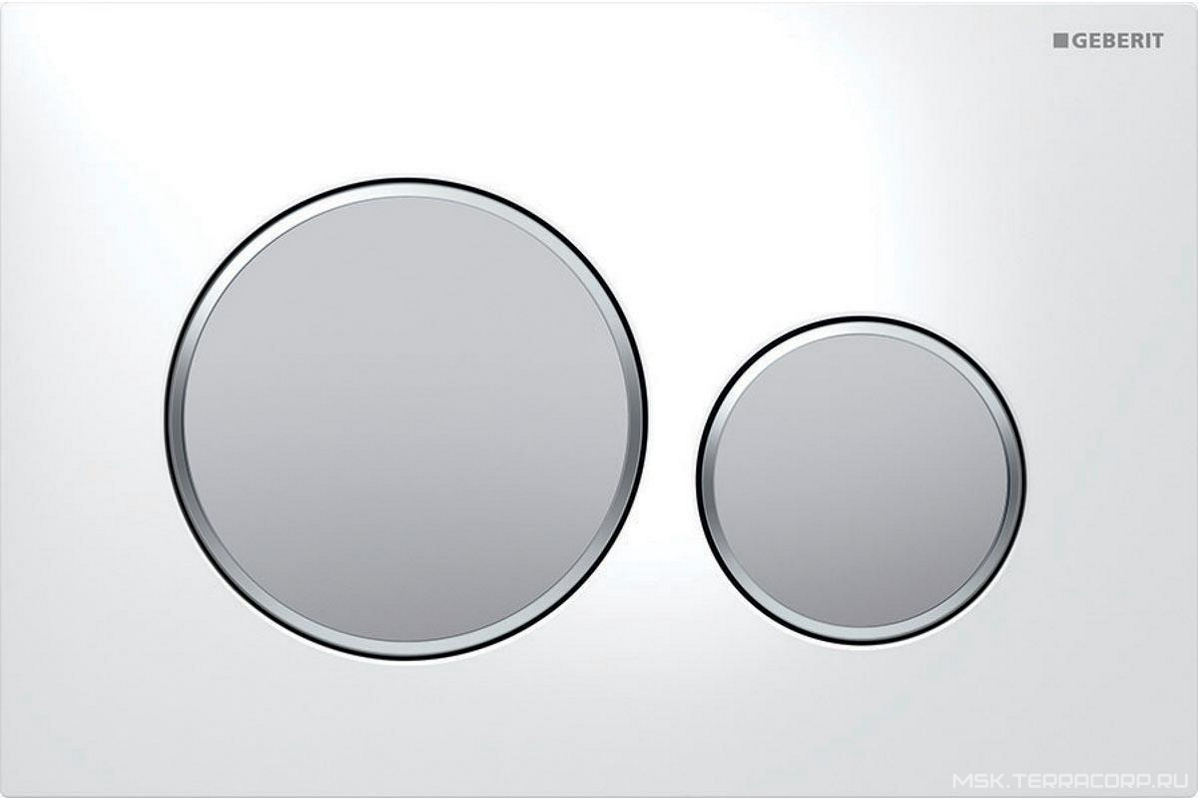 Клавиша двойного смыва, (пластик, рамка белая, кольца хром матовый, клавиши хром матовый), ZZ Geberit Sigma 20 115.882.KL.1