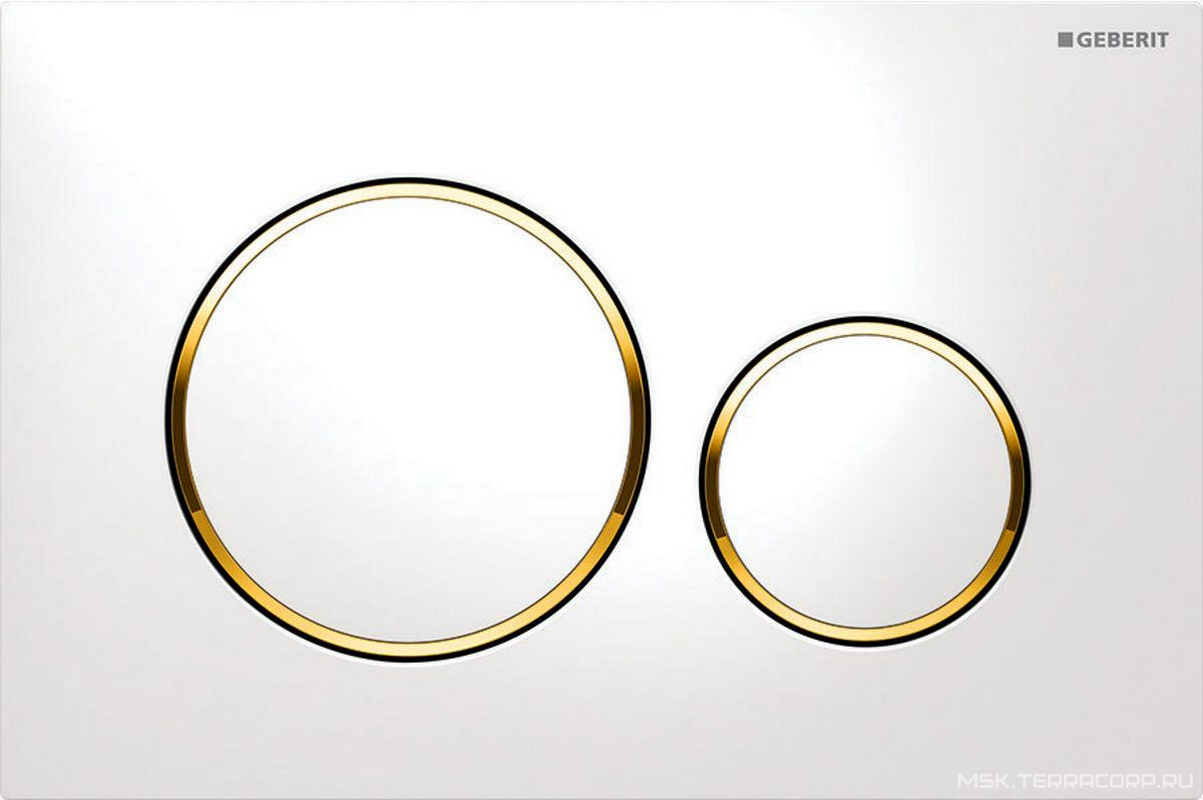 Кнопка Geberit Sigma 20 Клавиша двойного смыва, (пластик, рамка белая, кольца позолота, клавиши белые), Sigma 20 ZZ