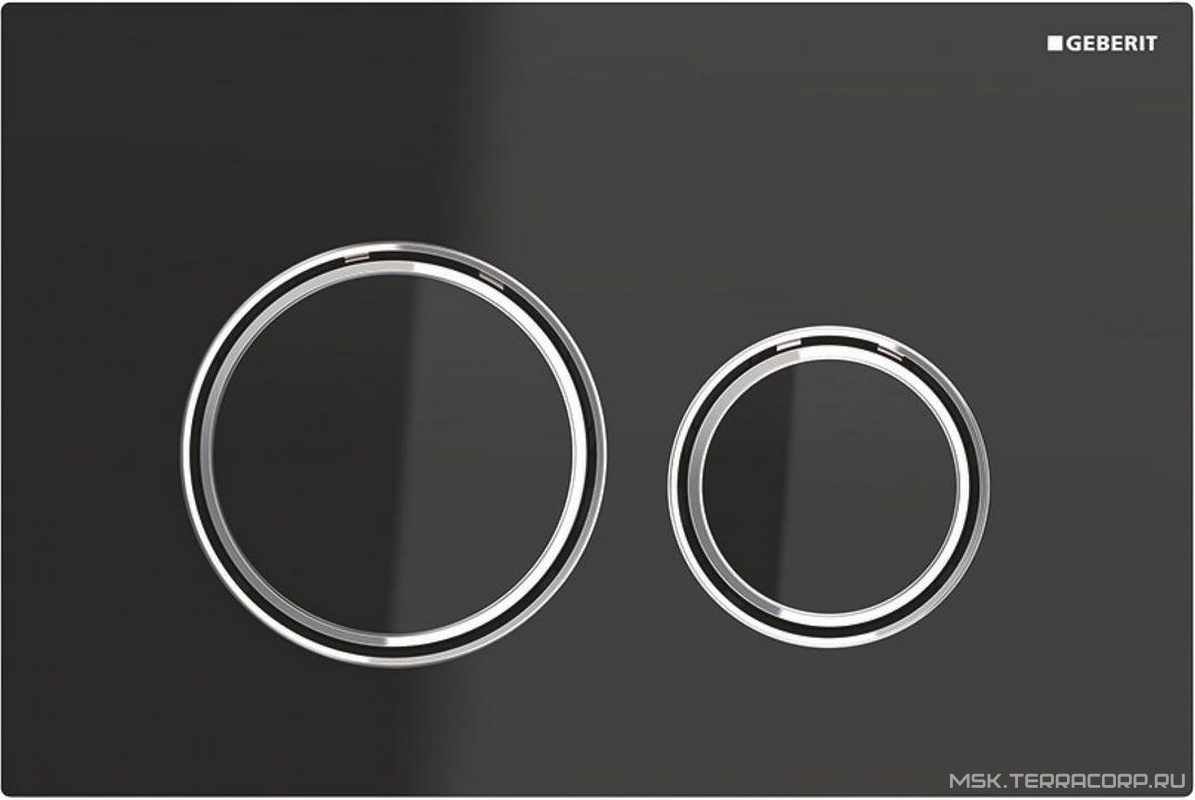 Клавиша двойного смыва, (сплав цинка, панель и клавиши стекло цв.чёрный, кольца цв.хром), ZZ Geberit Sigma 21 115.884.SJ.1