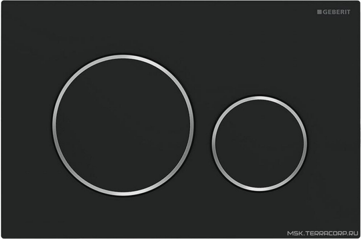 Кнопка Geberit Sigma 20 Клавиша двойного смыва, (панель и клавиши цв.черный матовый лак, кольца глянцевый хром), Sigma20 ZZ
