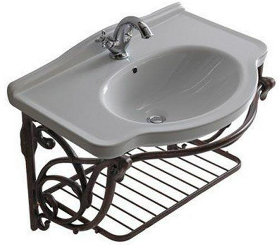 Структура подвесная для раковины 75см, с полотенцедержателем и полкой-решёткой (металл цв. алюминий античный), крепёж в компл., ZZ Galassia Ethos 8463
