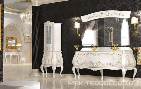 Пенал Лаура напольный 360x452x1800 мм, левый, цвет белый с зол. патиной ZZ