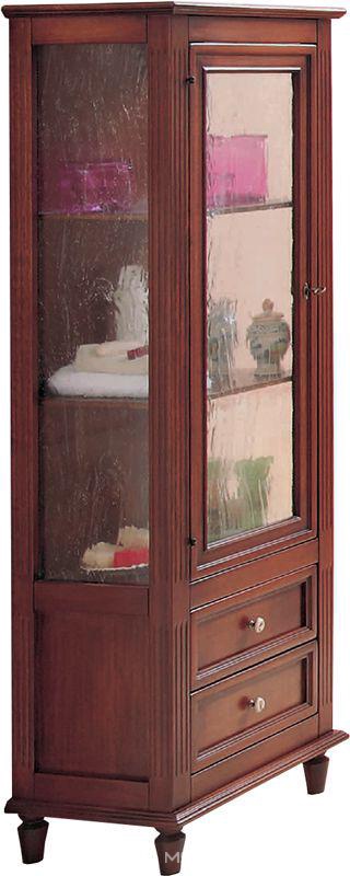 Пенал Cezares Moro Витрина 55х40хh163см, с 2 выдв. ящиками, и 1 расп.дверью петли слева, (цв. Ciliegio Anticato, стекло Gotico), Moro ZZ