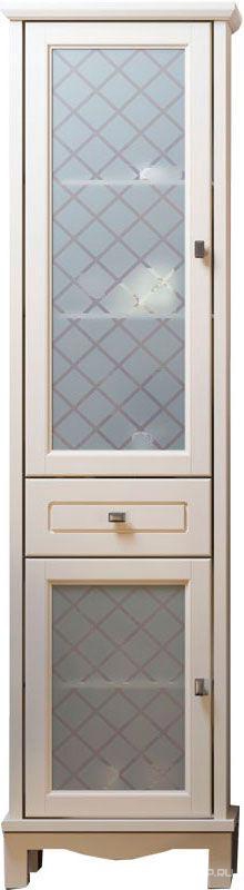 Пенал Тибет напольный 404*1988*380мм, правый, цв. слоновая кость с бел. корз.(верх. фас. худож.стекло, ниж.фас–глухой ) ZZ