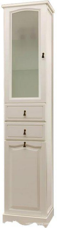 Пенал Тибет напольный 404*1988*380мм, правый, цв. слоновая кость с бел. корз.(верх. фас. худож.стекло, ниж.фас–глухой ) ZZ