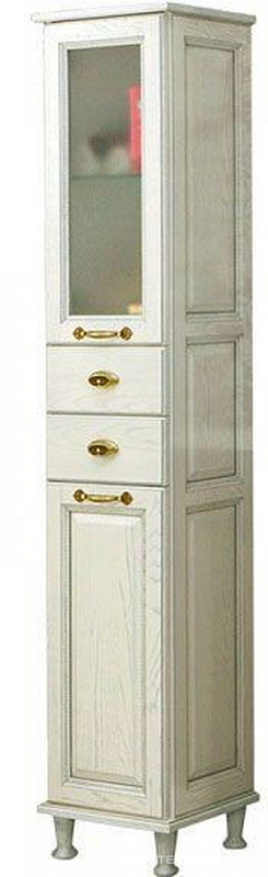 Пенал Тибет напольный 404*1988*380мм, правый, цв. слоновая кость с бел. корз.(верх. фас. худож.стекло, ниж.фас–глухой ) ZZ