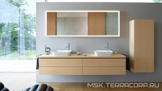 Пенал Duravit L-Cube Шкаф подвесной 700х363хh800мм, 2дверцы, 1 стеклянная полка, (шпон.натур.,цв.американский орех), L-Cube ZZ