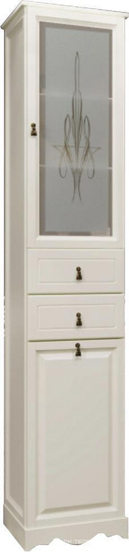 Пенал напольный 404*1988*380мм, правый, цв. слоновая кость с бел. корз.(верх. фас. худож.стекло, ниж.фас–глухой ) ZZ Opadiris Тибет Z0000006147