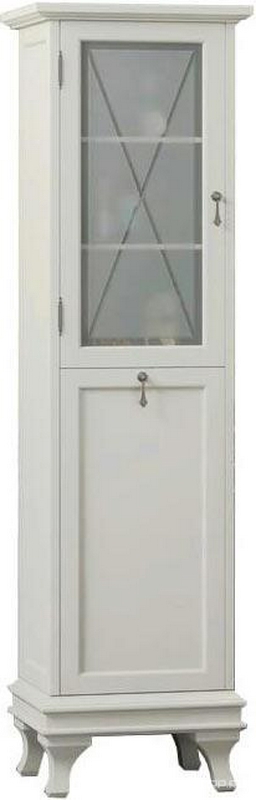 Пенал Тибет напольный 404*1988*380мм, правый, цв. слоновая кость с бел. корз.(верх. фас. худож.стекло, ниж.фас–глухой ) ZZ