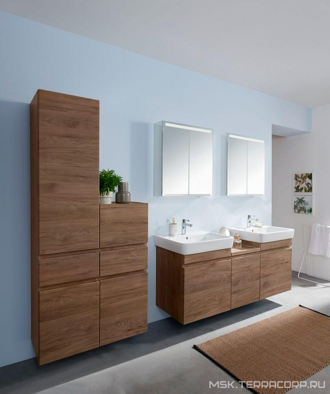 Пенал Geberit Renova Plan Шкаф пенал подвесн. 390хh1050х360мм, правый/левый, 2 дверцы, 1 выдв.ящик, крепёж в комп., (цв. Пекан), Renova Plan ZZ