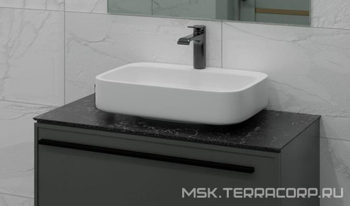 Раковина накладная (мебельная) 90x45х15 см, 1 отверст. под см-ль, искуств.мрамор, цв. белый, ZZ
