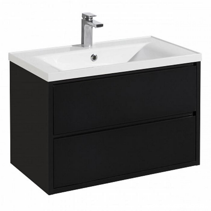 База под раковину подвесная с 2 выкатными ящиками, 800х450x530мм, (без раковины), (цв.Nero Lucido), Marino ZZ
