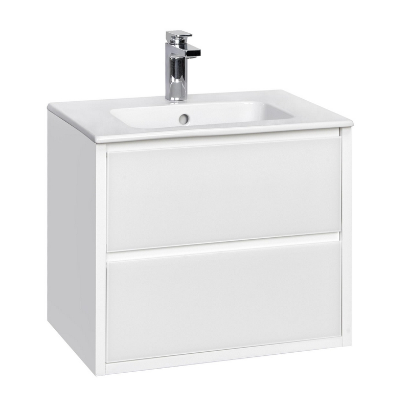 Тумба подвесная под раковину Бруклин 60 белый, 495х436 мм, БЕЗ раковины Sanovit (198206), 2 выдвижный ящика, цв. белый