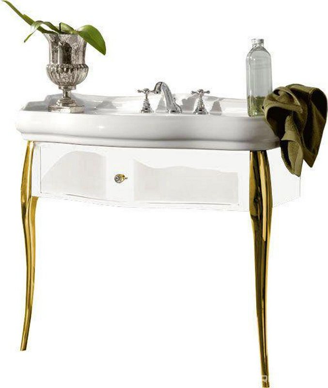 Тумба Kerasan Retro Основа на метал. ножках для раковины 100см, арт.1050 01, (ножки цв.золото, выдвижн. ящик цв.белый лак, ручка цв.золото) Retro ZZ