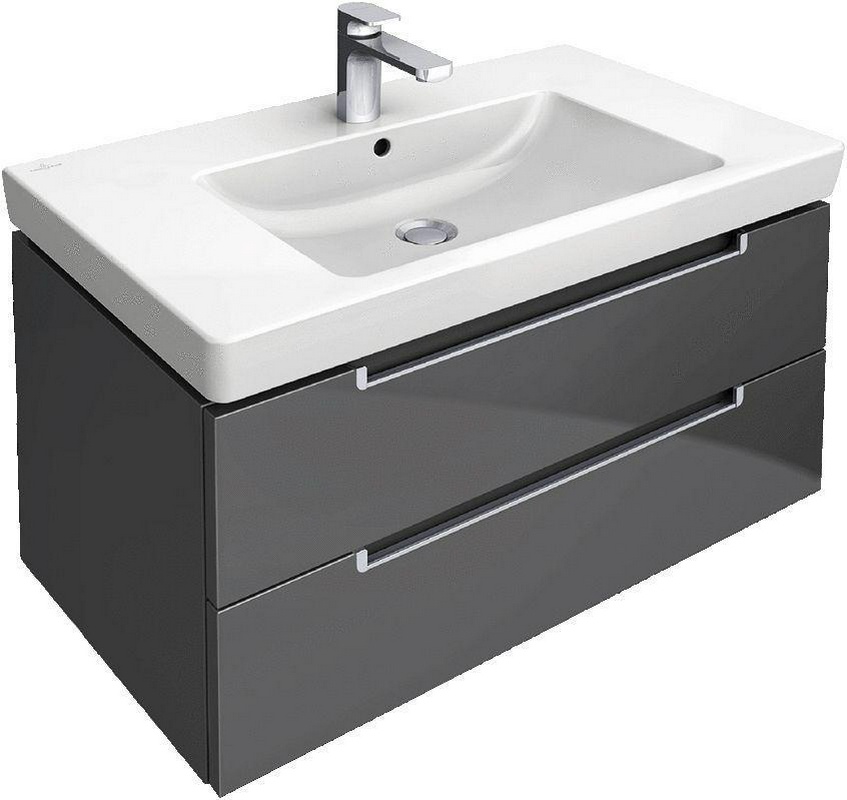 Тумба Villeroy & Boch Subway 2.0 Тумба 787хh420х449мм, д/раковины 800мм,(2 выдв.отдел., 3 контейн.д/акс., 4 алюм.штанги, 2стекл.перег., креп.в комп.,(цв. FP серый глянц) Subway 2.0ZZ