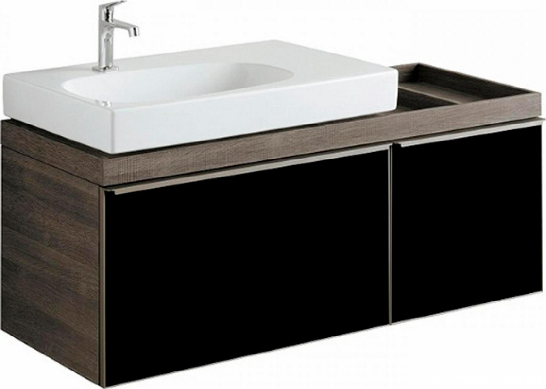 Тумба Geberit Citterio Тумба 1184хh554х504мм, полочка справа, 2 выдв. ящ, 1 внутр ящ, д/уст. с рак. арт. 123575, (цв. тёмный дуб, стекл. фр/панель чёрн цв.), креп/комп ZZ