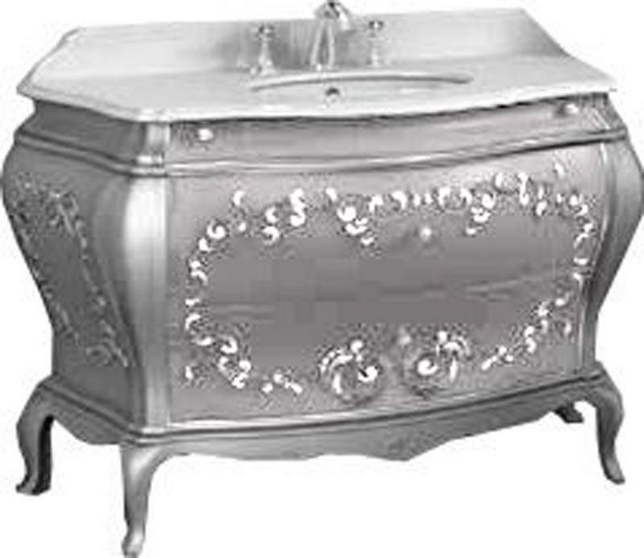 Тумба напольная 130/110х60хh82см, под раковину, 2 ящика (цв. Anticato Bianco, декор цв. Anticato Bianco, ручки цв. хром), ZZ Il Tempo Del Ornamenti MO 2381Ant.Bianco/Ant.Bianco/Cr