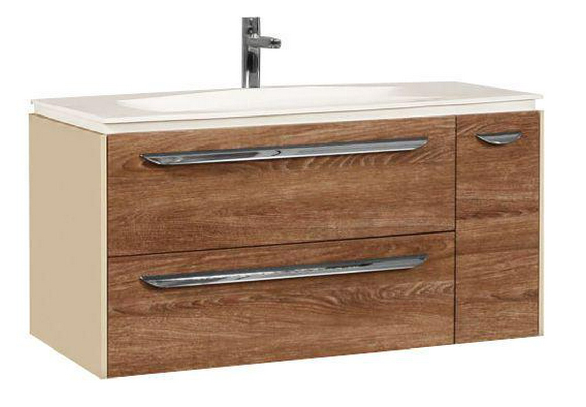 Тумба Aquaton Блент Тумба подвесная Блент 2Б 100 1000*490*448 мм, БЕЗ раковины Блент Д 1000, цвет кремовый/дуб европейский ZZ
