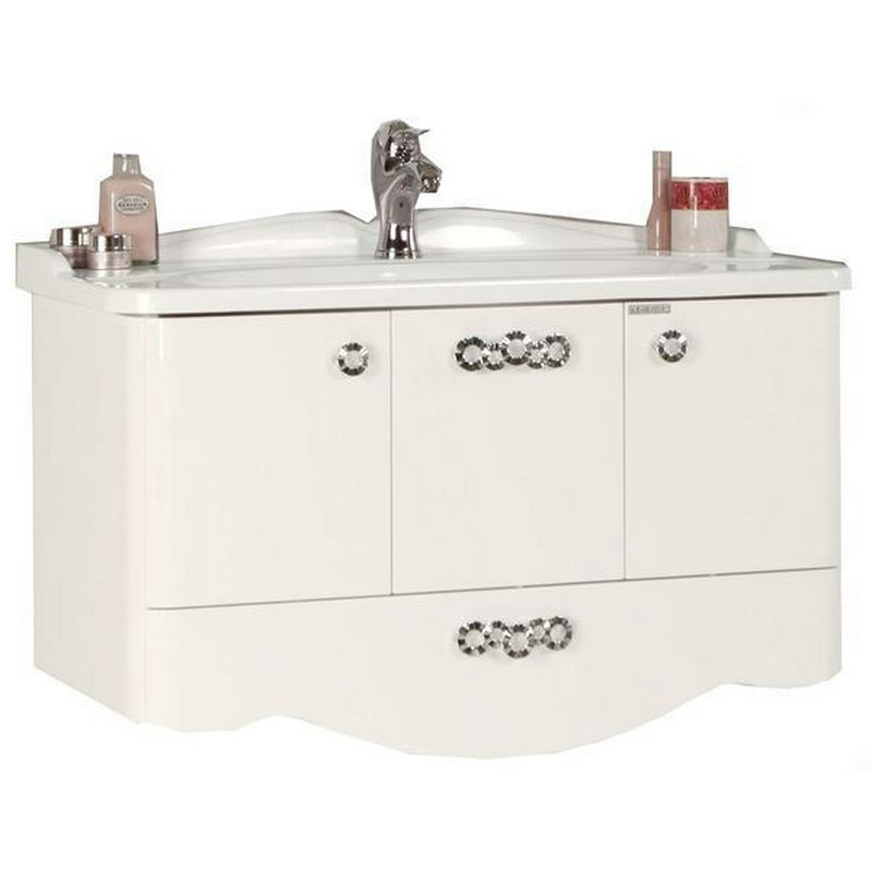 Тумба напольная Оникс 100, 1030*855*450 мм, цвет белый/серебро патина, БЕЗ рак. n126396 Кападокия 100 (ст рак.Прима 1000)