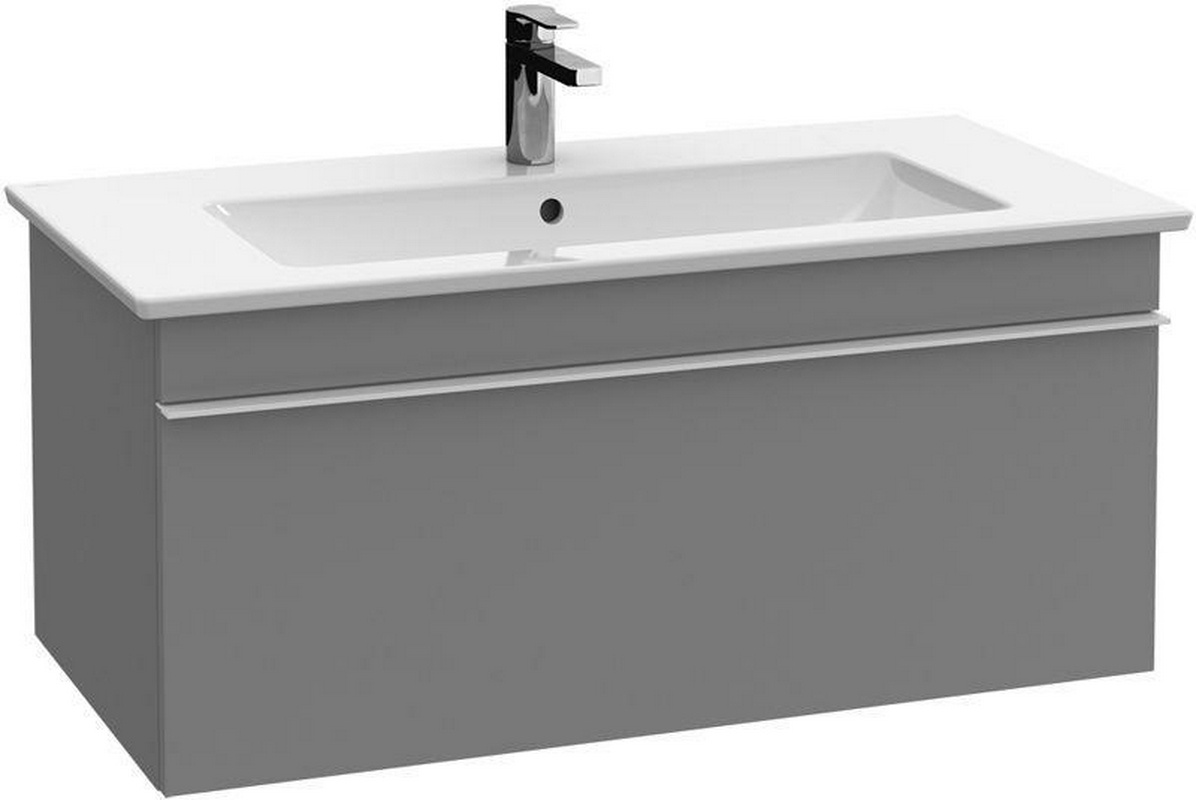Тумба Villeroy & Boch Venticello Тумба 953хh420х502мм, д/раковины 1000мм, (1 выдв.отдел., 1 контейн.д/акс, 1+2 стекл.разд,сифон,креп.в комп),(ручк.хр.цв.FP серый глянц), Venticello ZZ